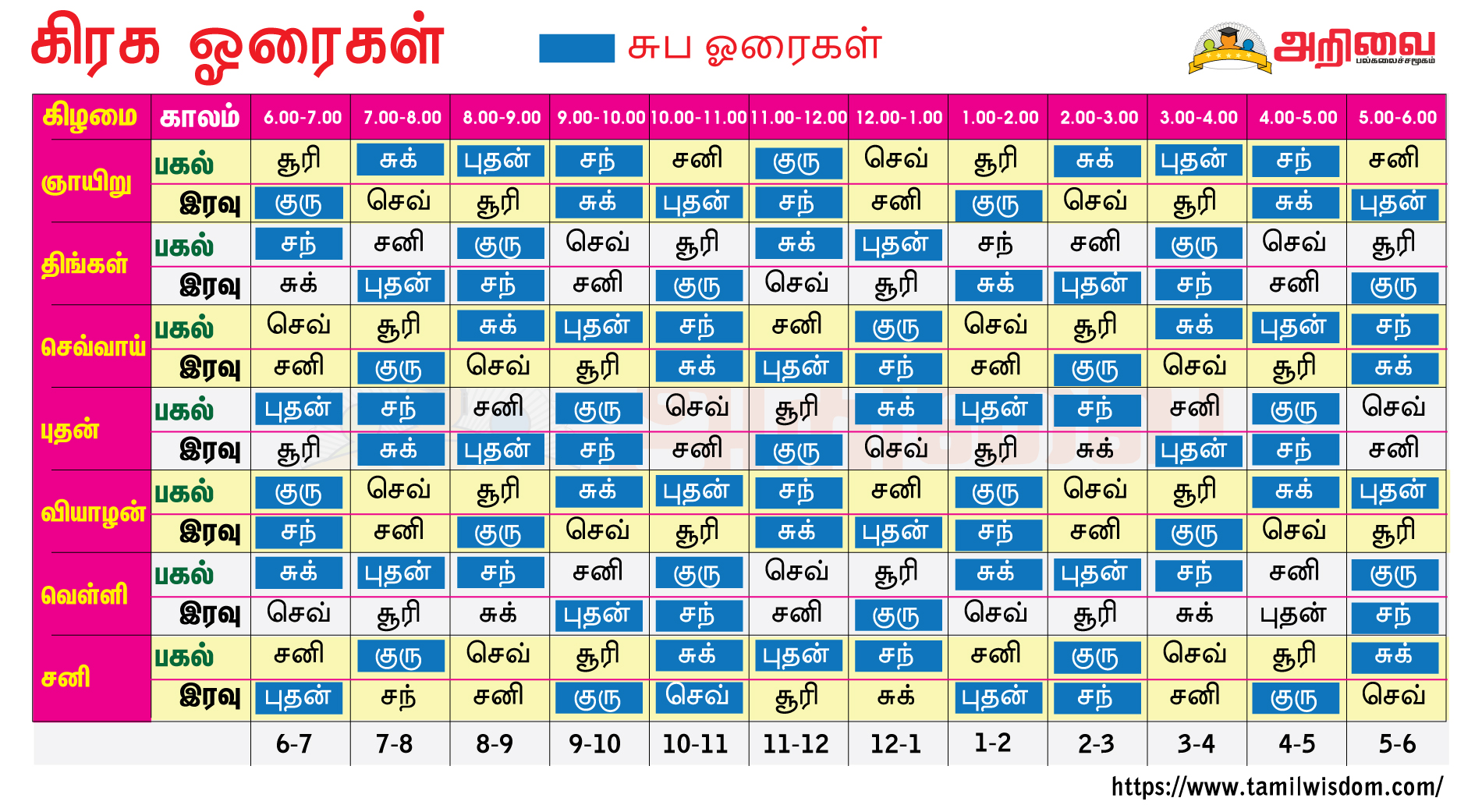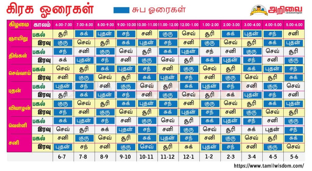 தொடர்ந்து எவை எவை நல்ல கிரக ஓரைகள் என்றும், என்ன என்ன செய்யலாம் என்று பார்க்கும் பொழுது: .
